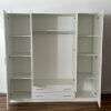 Armario cuatro puertas y 2 cajones inferiores. Estructura central de 2 puertas con barra y balda superior y una puerta lateral a cada lado solo de baldas.