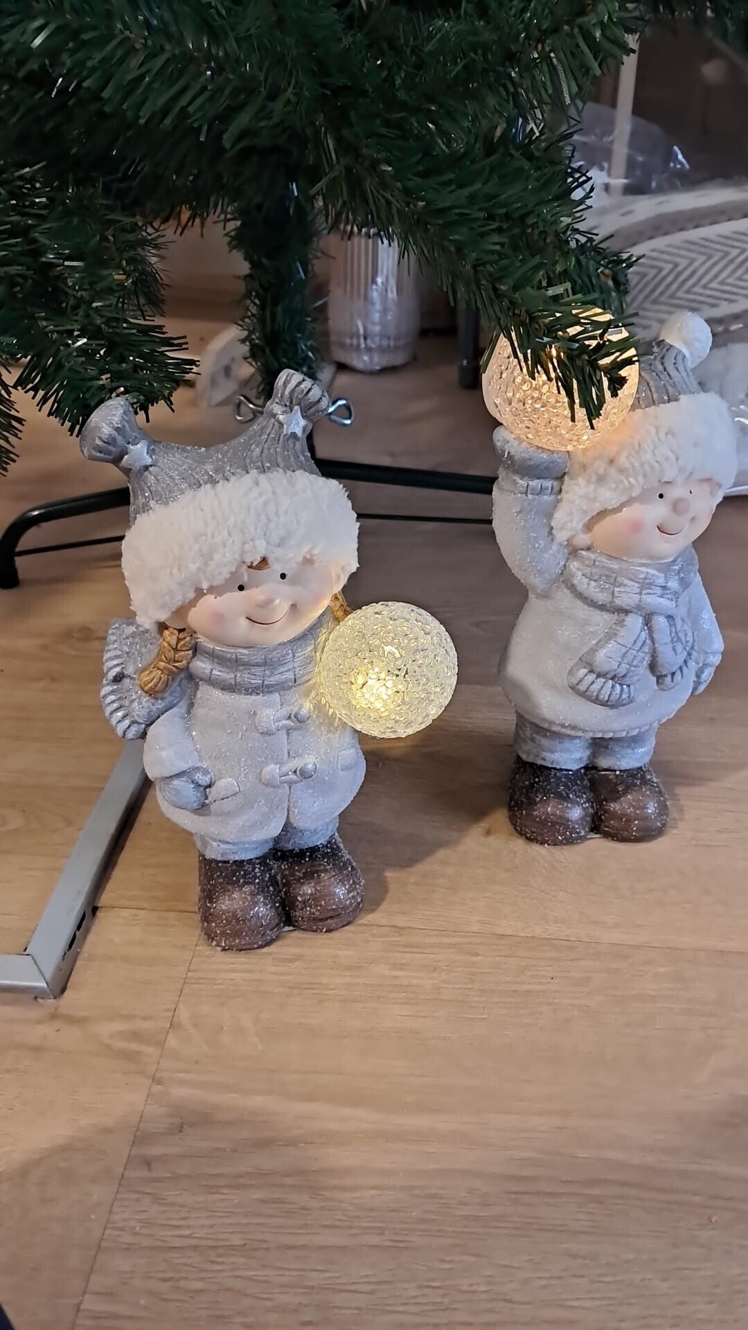 Muñecos de ceramica con bola de iluminacion en LED, incluida pila. Dos modelos niña o niño.