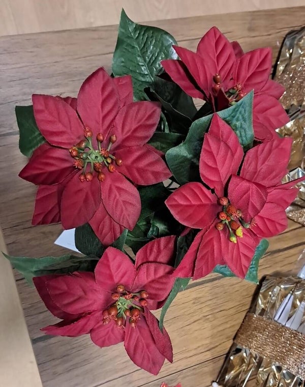 Bonita planta navideña, con terminacion en tela de terciopelo.
