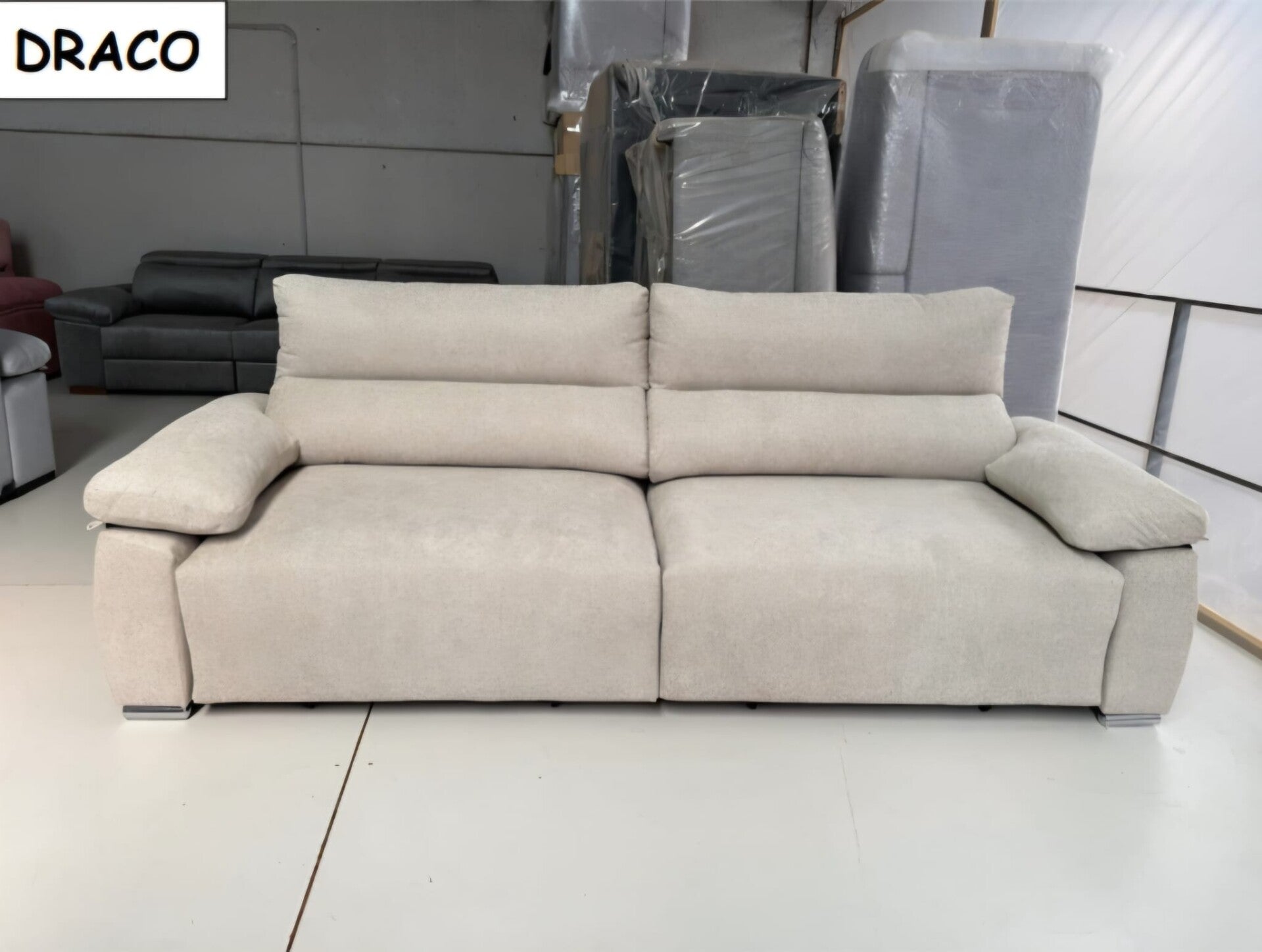 Asientos con espuma de poliuretano en densidad 28/30 kg, con un grosor de 20 cm, cubierto con fibra hueca siliconada. Armazón de pino macizo y aglomerado de tres capas en chapa de madera natural.Asientos con deslizante carro. Respaldos rellenos de fibra hueca siliconada.Cabeceros reclinables.Cincha italiana de alta resistencia.